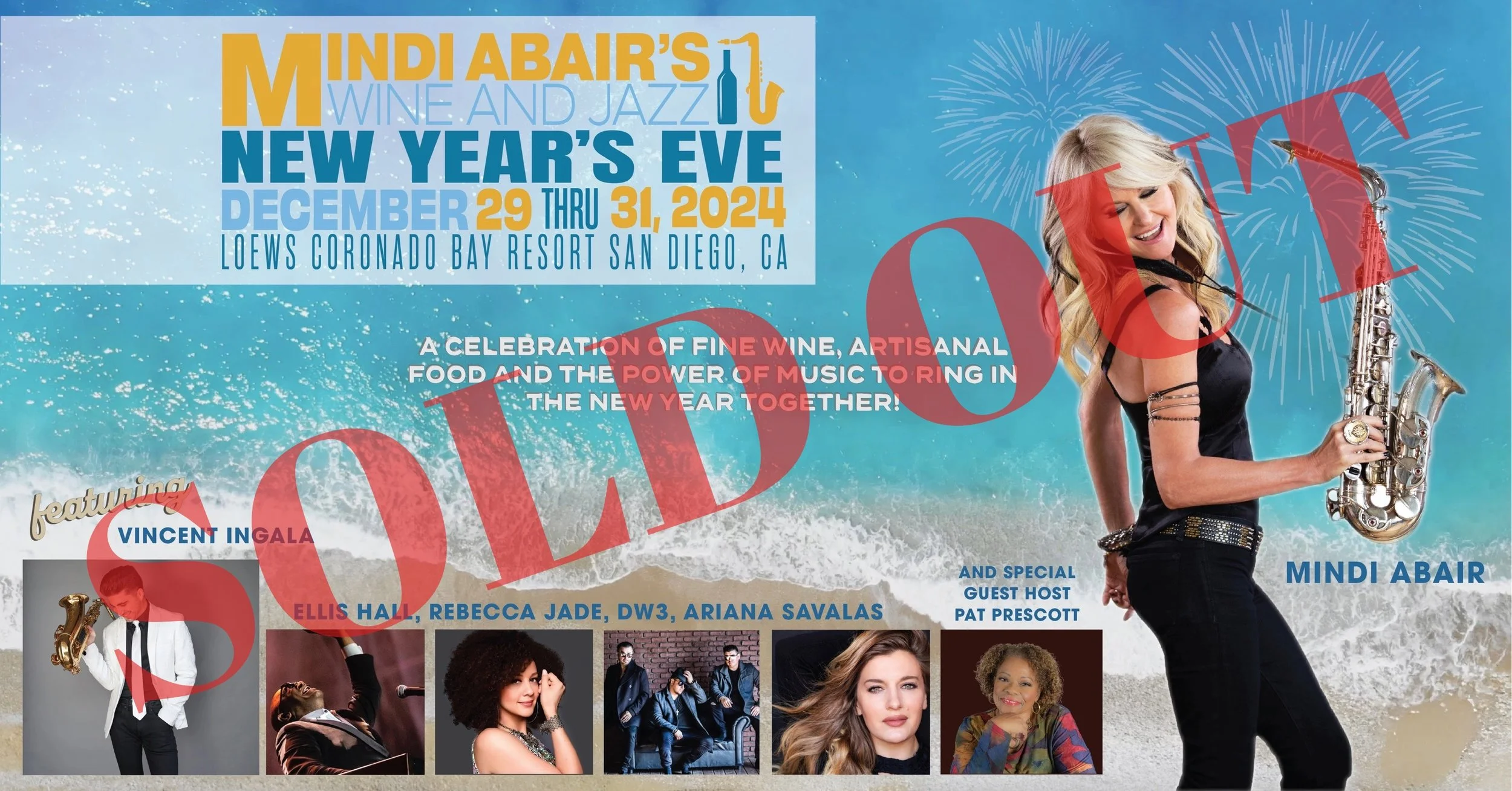 Gold seating to both star-studded Premiere Dec 30th & New Year’s Eve dinner and shows curated and hosted by Mindi Abair * New Year’s Eve midnight toast * The finest wine & cuisine curated by Eric Guerra * Wine and Jazz Tasting Hosted By Mindi Abair and Eric Guerra * Private booking link to the 4-star Loews Coronado Bay Resort with access to our discounted room rates as well as upgraded rooms & suites